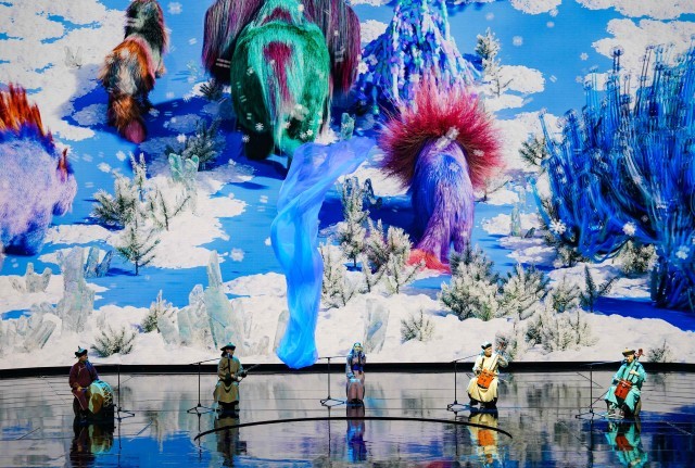 《澳门2049》还有一个关键特质:站在舞台上的并非模仿非遗的演员,而是来自不同原生文化土壤的非遗传承人。他们不是被“展览”的对象,也并非作为文化符号被安放在舞台上。他们被邀请到澳门这个国际舞台,被置于世界级的艺术制作体系之中——与顶尖的导演团队、国际一流的舞台技术团队、美高梅的制作运营体系一起工作。